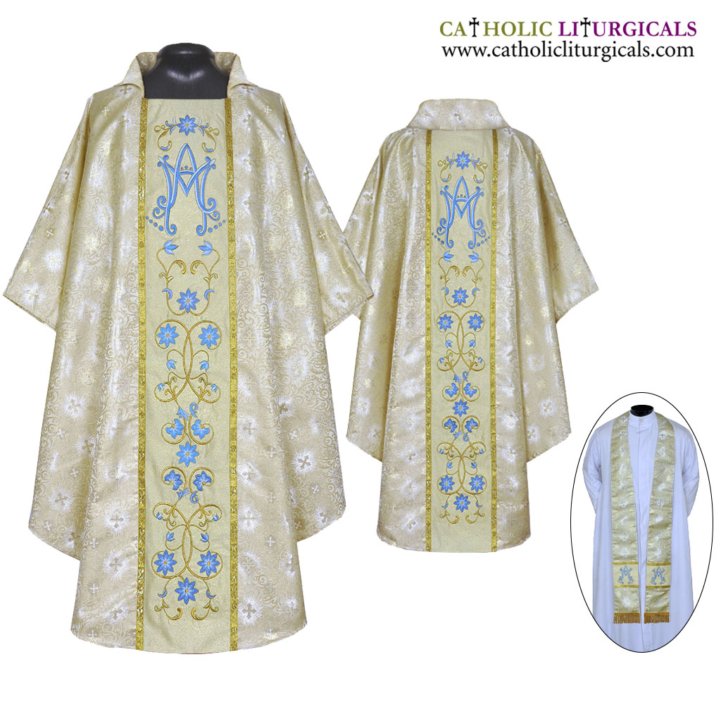 White Gold Marian Vestment & Stole Set - AM