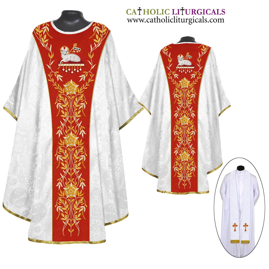 White Gothic Chasuble & Stole Set - IHS Embroidery