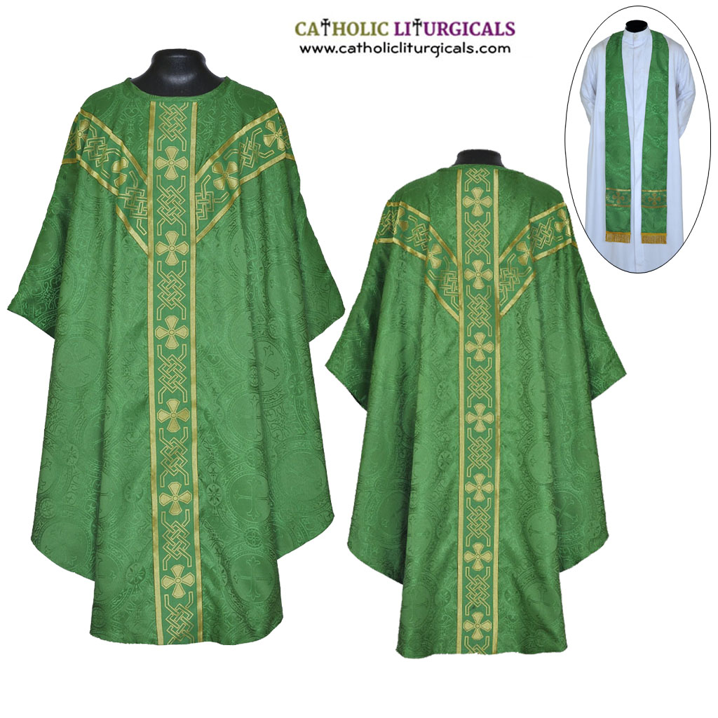 Green Deacon Dalmatic Vestment & Mass Set