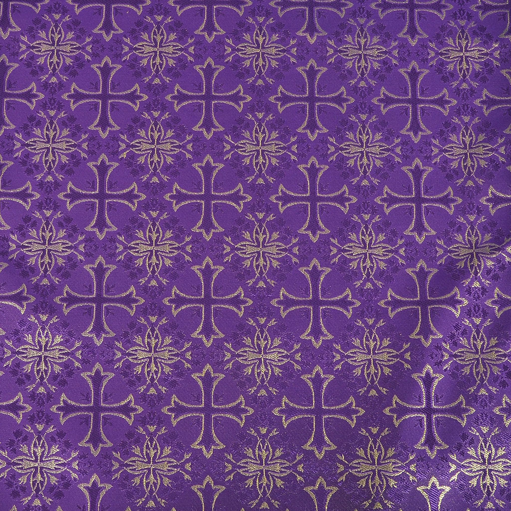 Cross Designed Church Brocade Fabric - Purple (Violet)