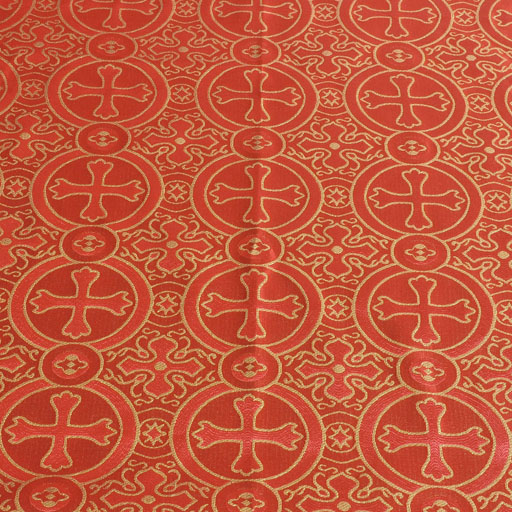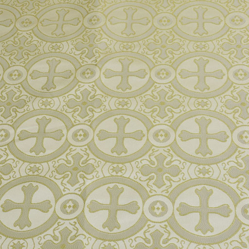 Offered here is Brocade fabric made of Polyester yarn & Metallic Gold / Silver yarns with (approx) 7.5 inches repeated cross design. The width of the fabric is 56 inches and the fabric is sold by meters (1 meter = 1.1 yard). This is to ensure that you get complete patterns, so as to avoid wastage. The maximum size of the bolt is 20 meters. So if you order 20 meters, you will receive them as a single piece.