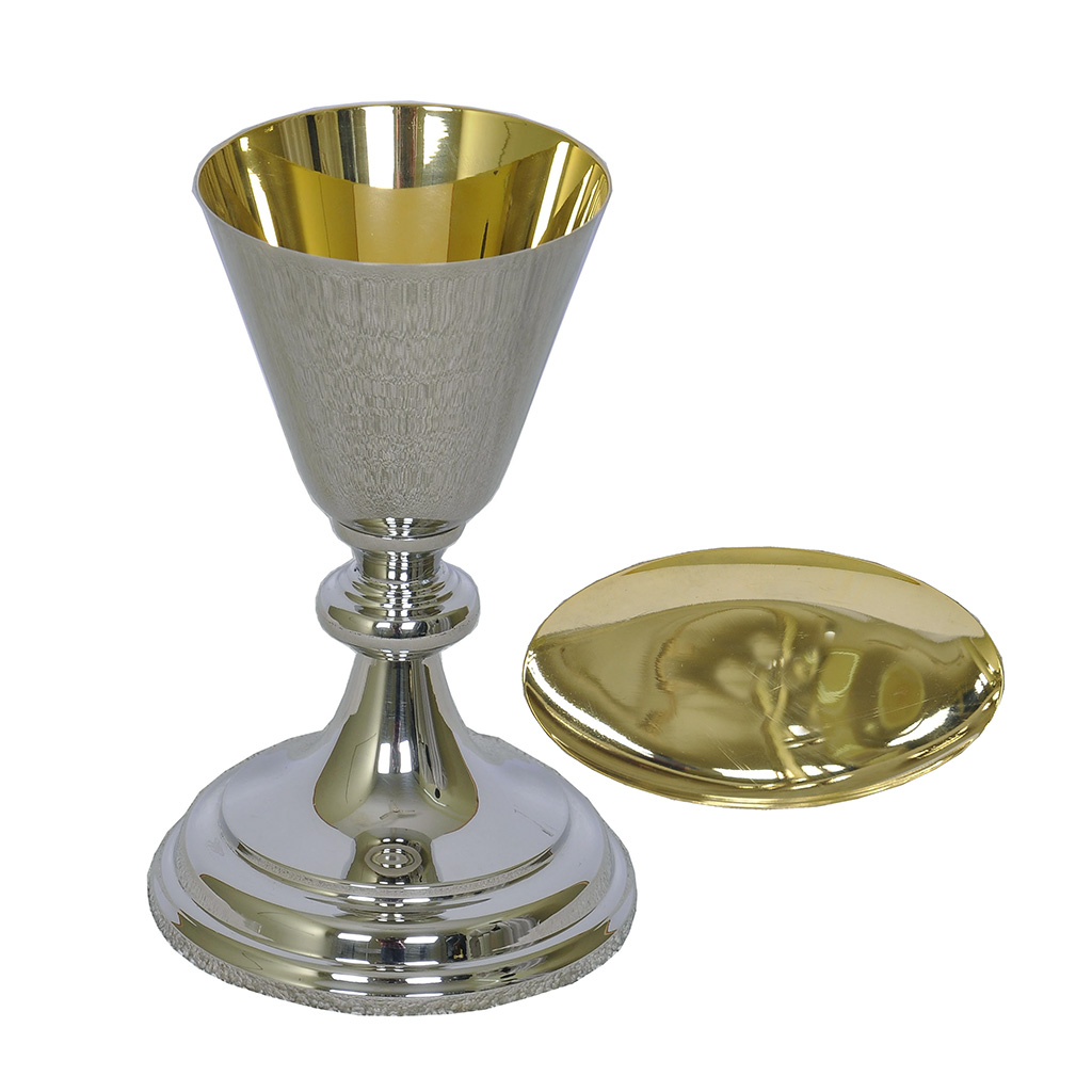Silver Chalice & Paten Set - V Cup - Nickel Outside, 24k Gold Inside