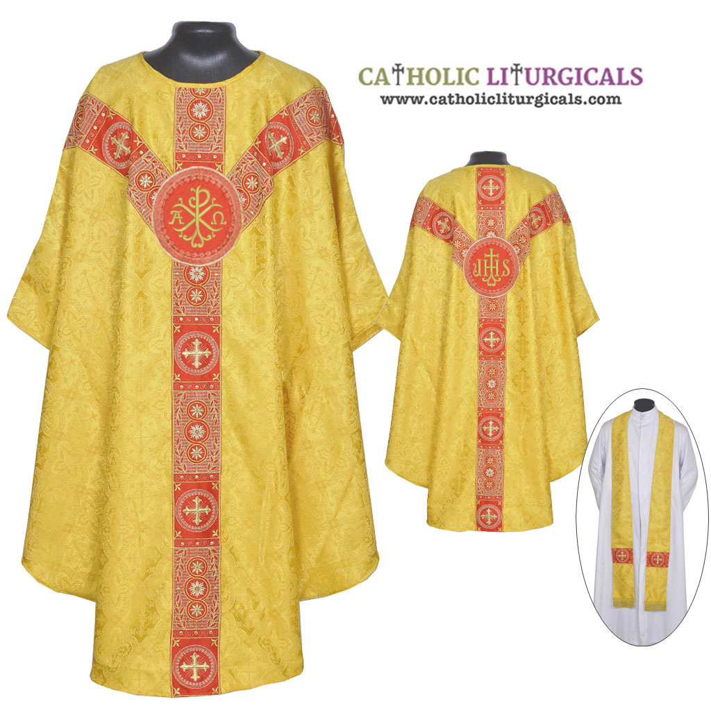 Yellow - Cope & Stole Set - Embroidered orphreys