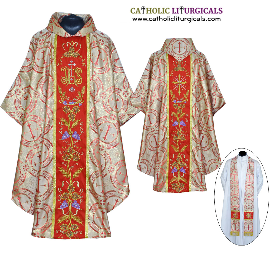 Metallic Red Gothic Collar Vestment & Stole Set
