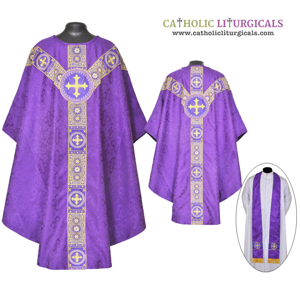 This Hanging - is made of Cross, Crown & Thorn Design Damask Fabric. The hanging is lined with satin fabric and interlined with felt fabric for stiffness. The hanging comes with a 2 inch pocket for rod on the top. The normal height of the hanging ranges between 32 - 48 inches. The maximum width of the hanging is 24 inches.