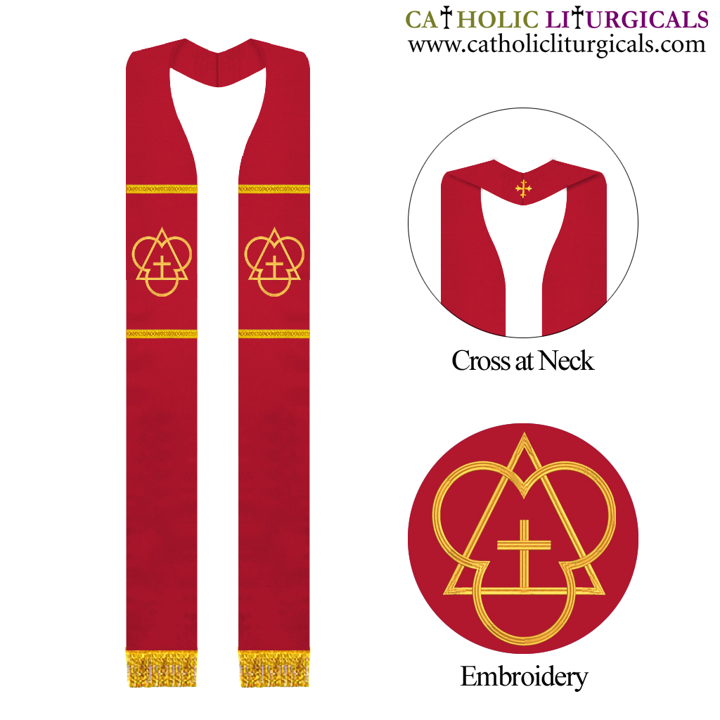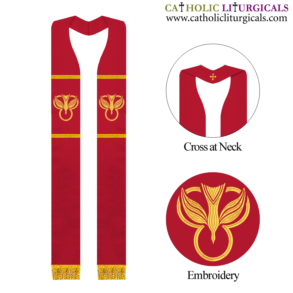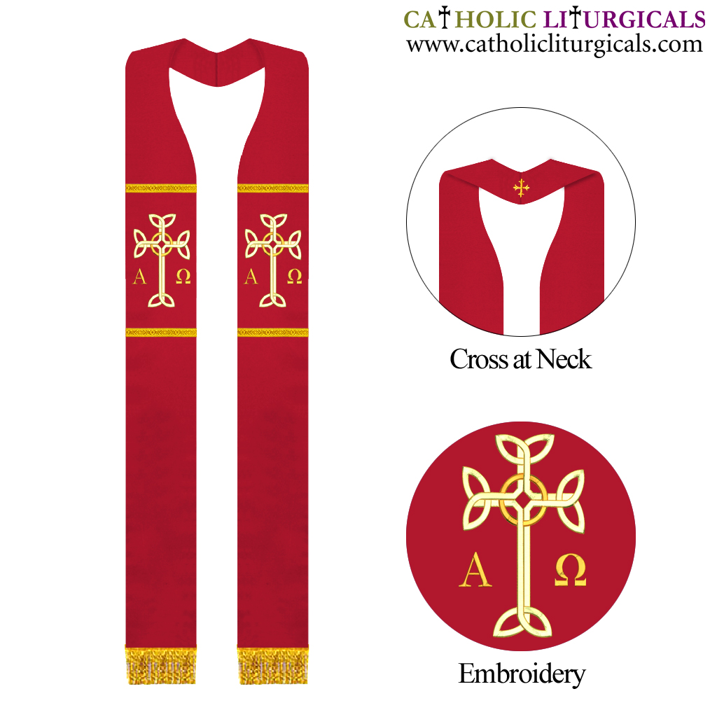 Red Priest Overlay Stole - Cross and Wheat Embroidery
