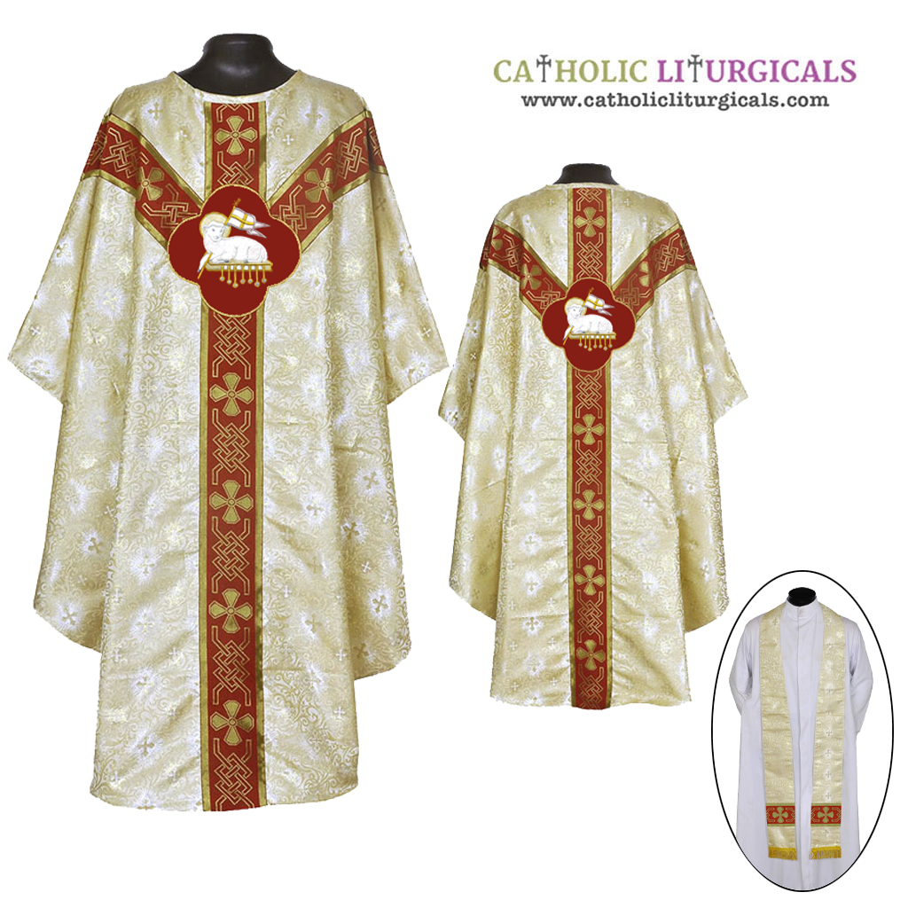 White Gold Gothic Vestment & Stole Set - Agnus Dei Motif