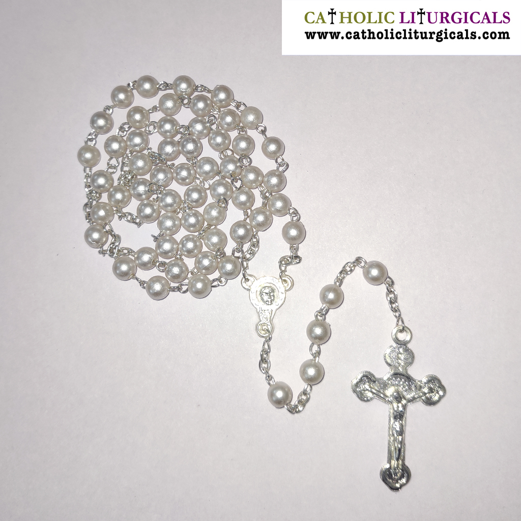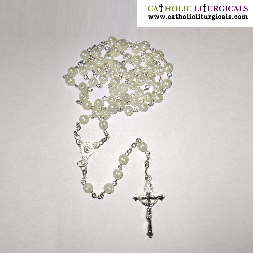 The Rosaries are made of Round cut Plastic Beads and are linked with brass metal links. The Crucifix & the Pendants are also made of Metal.