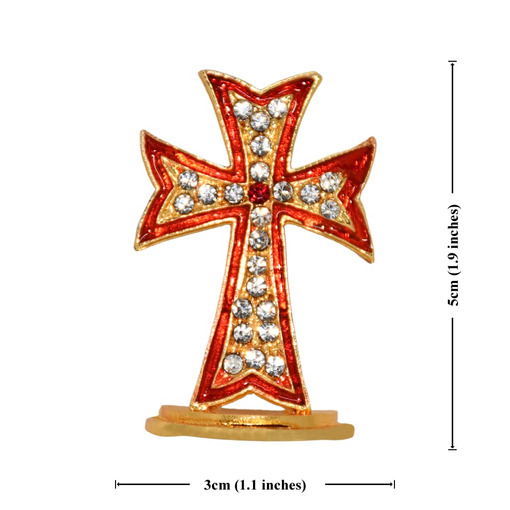 Gold Finish Standing Crucifix with White Stones