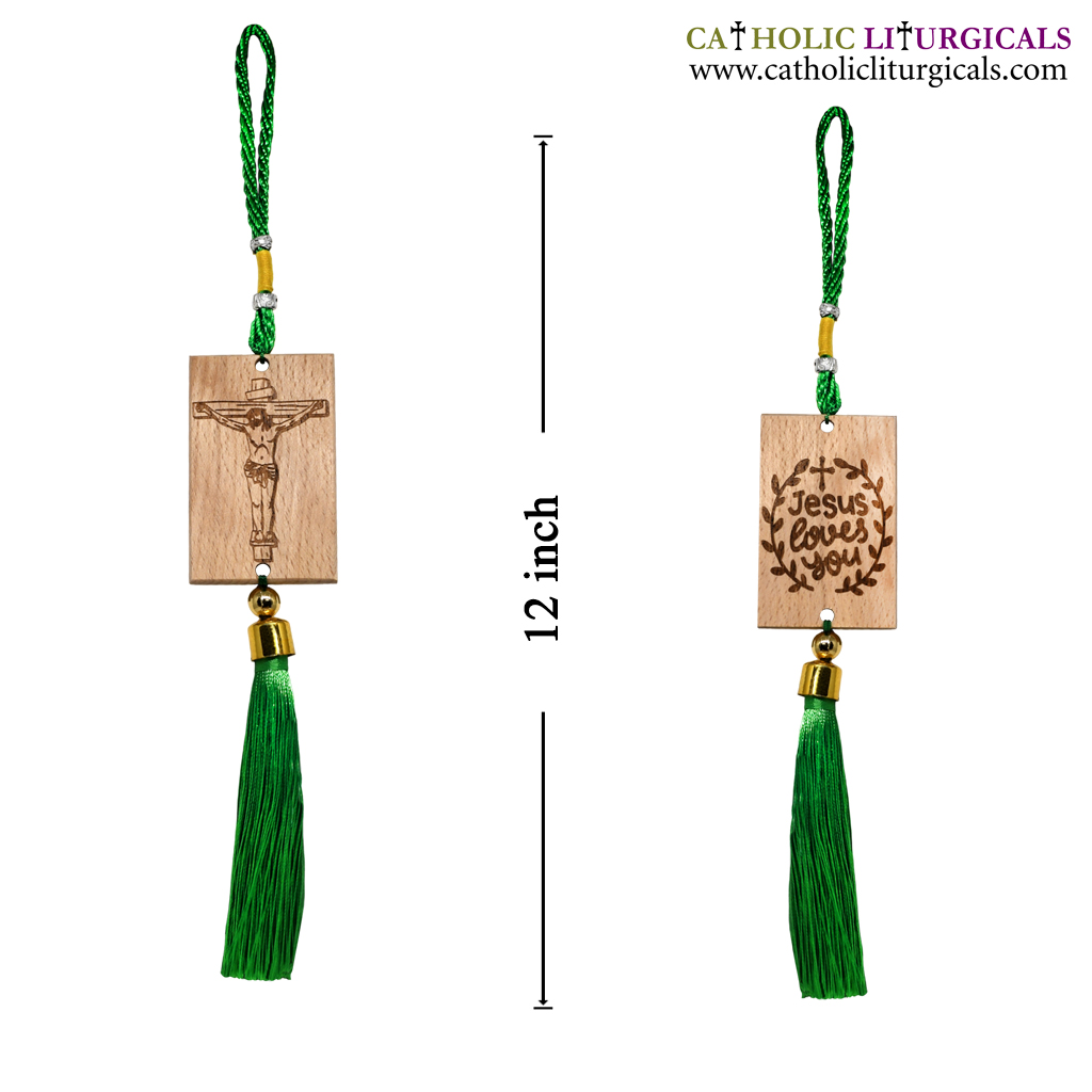 Green Wooden Jesus & Mary Car Hanging - Double Side