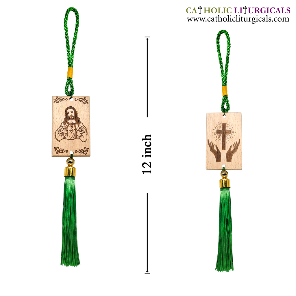 Green Wooden Jesus & Mary Car Hanging - Double Side