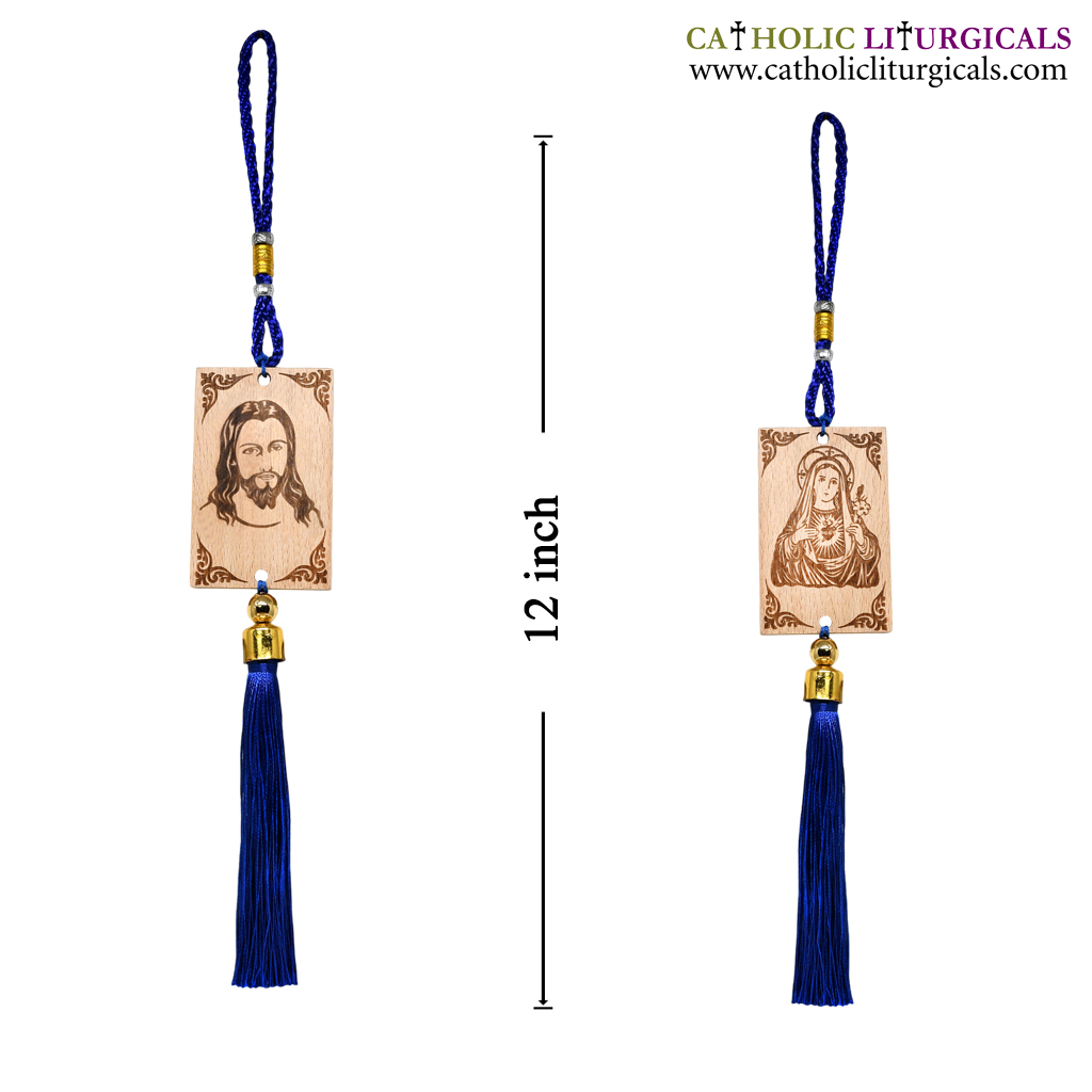 Dark Blue Wooden Jesus & Mary Car Hanging - Double Side