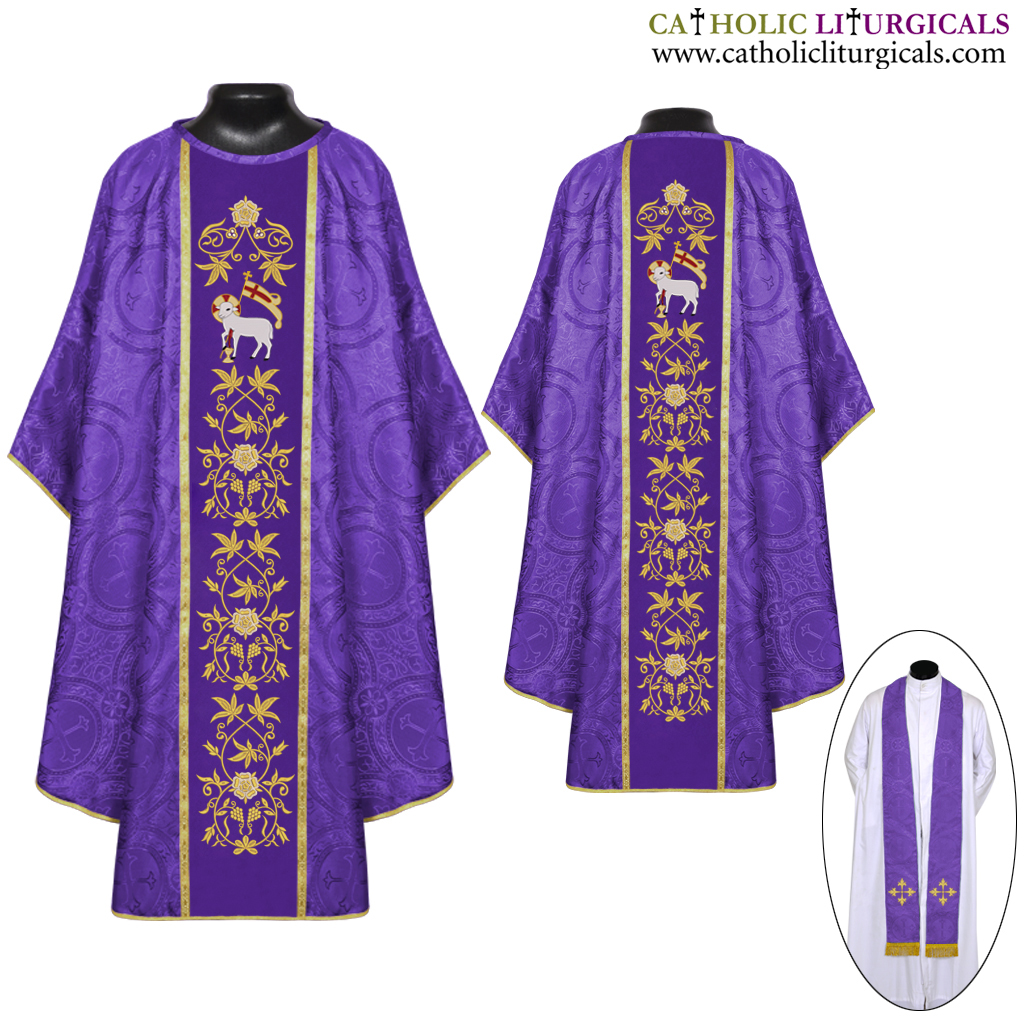Purple Gothic Vestment & Stole - Agnus Dei Embroidery