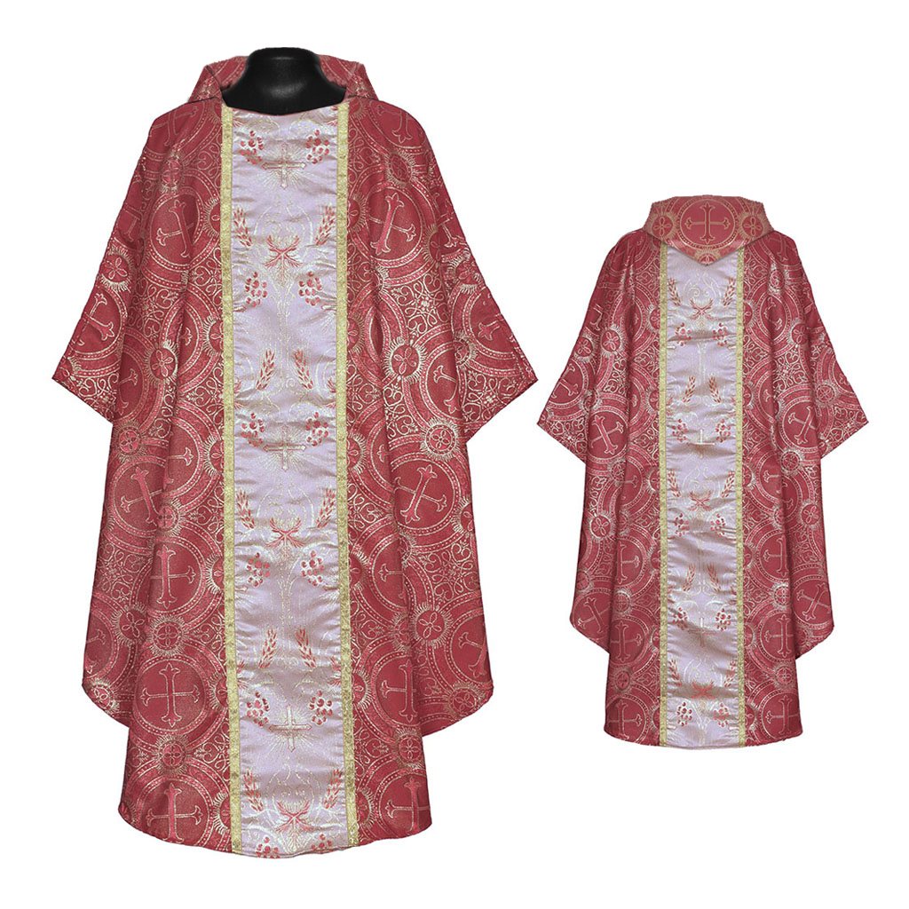 The vestment is made of Brocade Fabric with Cross Designs. The orphreys are made of high quality jacquard woven fabric with cross, wheat and grapes design.