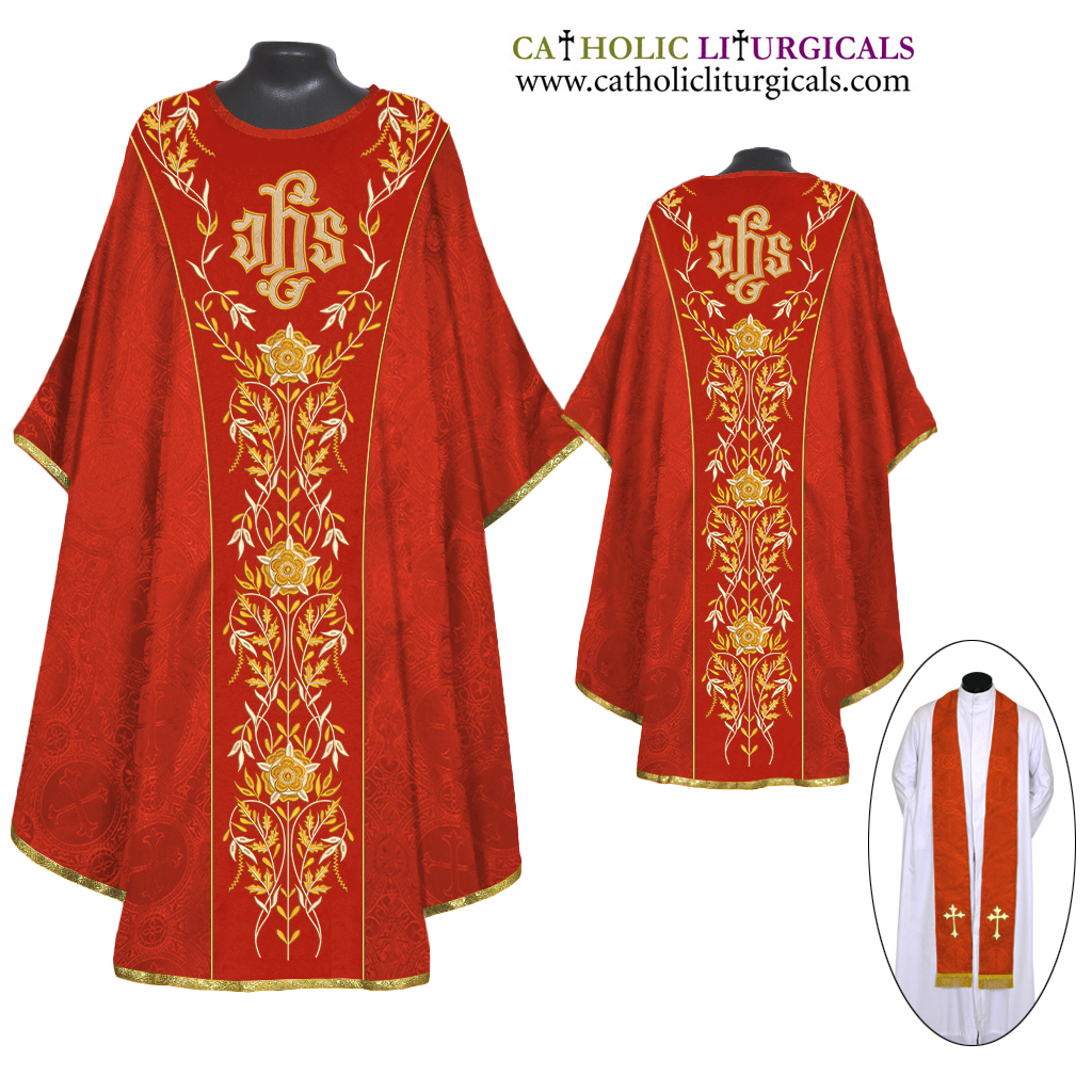 Red Gothic Chasuble & Stole Set - Agnus Dei Embroidery