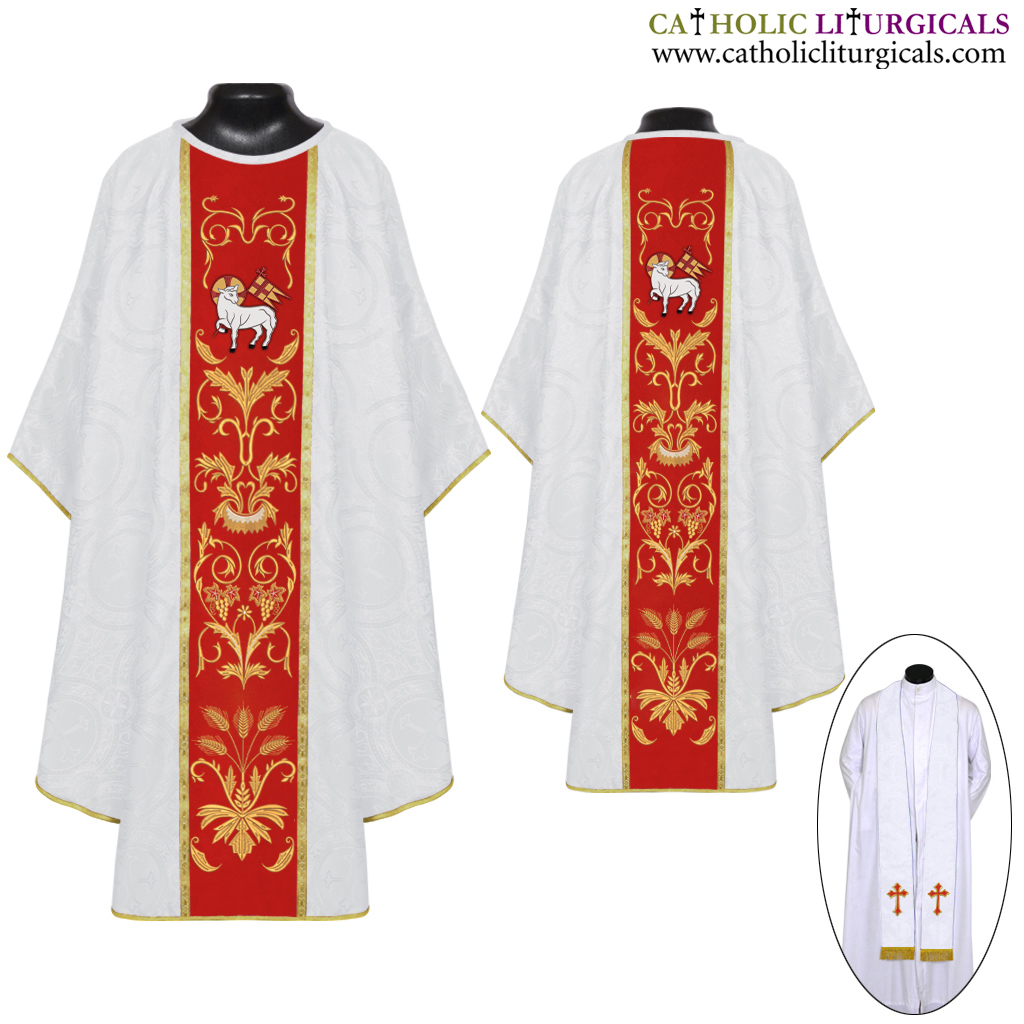 White Gothic Chasuble & Stole Set - IHS Embroidery