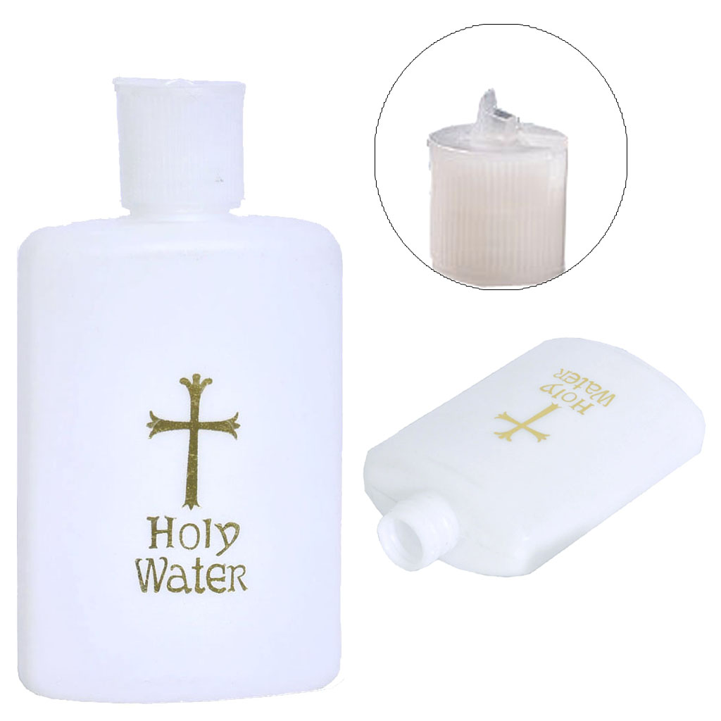 This travel size Holy Water sprinkler is made of moulded plastic and holds 4.5 ounces / 130 ml. It has a combination flip-top and screw on lid to safely hold the Holy Water. Comes with a screw off cap for easy filling and stamped with a gold cross and the words "Holy Water" and includes a convenient locking spout to avoid accidental spills or leaks.