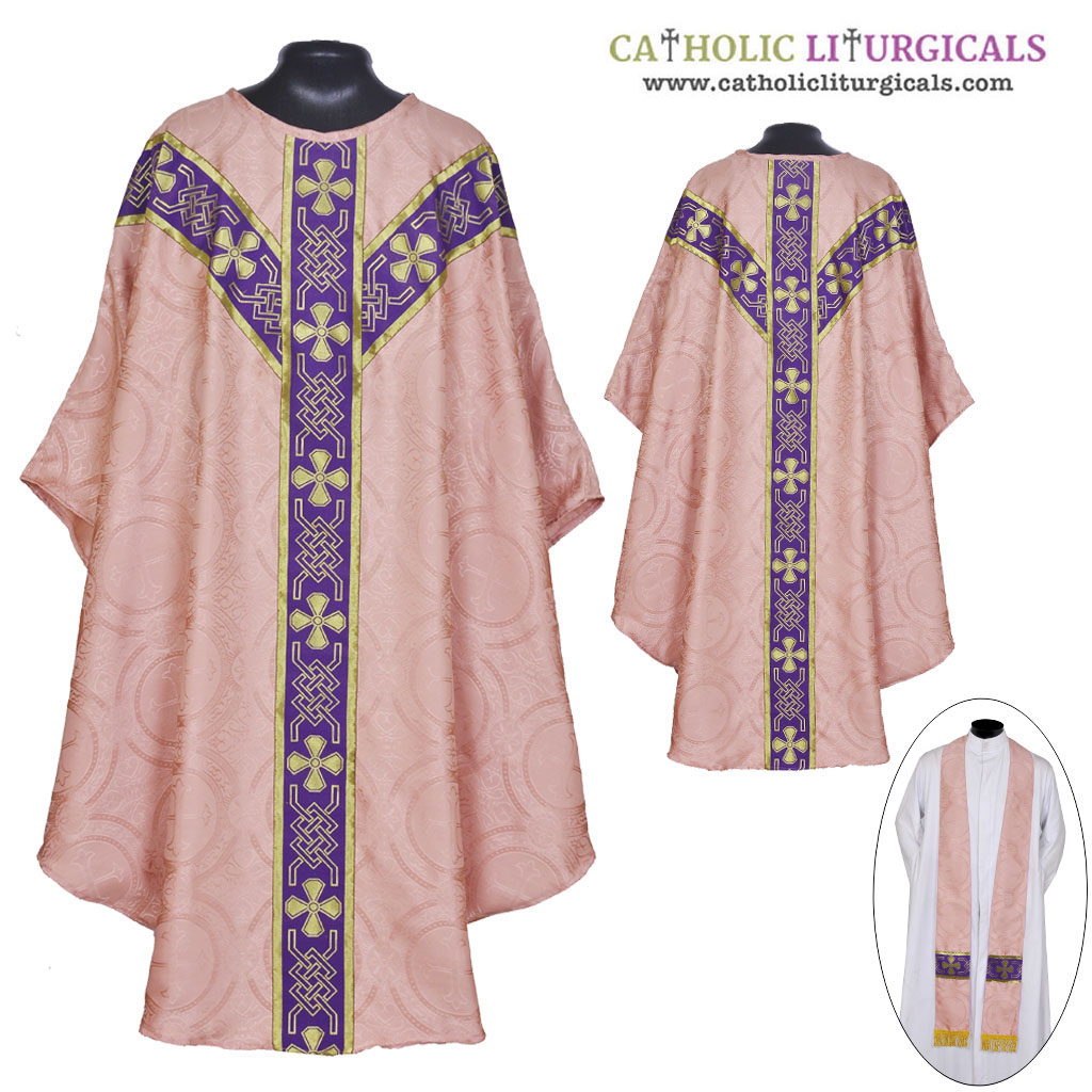 Rose with Purple Orphrey: Gothic Chasuble & Stole Set