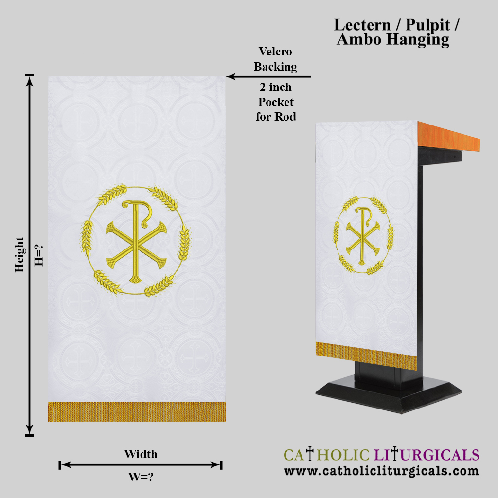 Please select the size as per your pulpit height requirement. i.e if you want a hanging of 20 inches, please select 24 inches. Also if you would like to have velcro or 3 inch extra fabric on the top instead of the 2 inch pocket, we can do that at no extra cost. Please email us as soon as you make the payment for any custom changes.