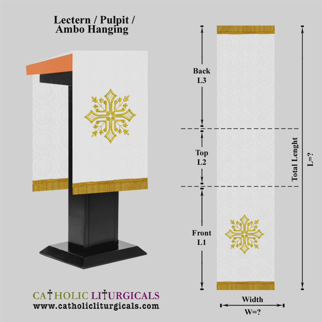 White Pulpit Lectern Ambo Hanging - Cross Embroidery