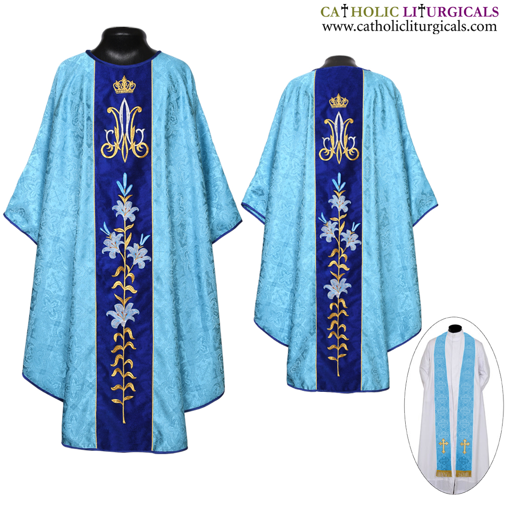 Marian Blue Gothic Vestment & Stole Set