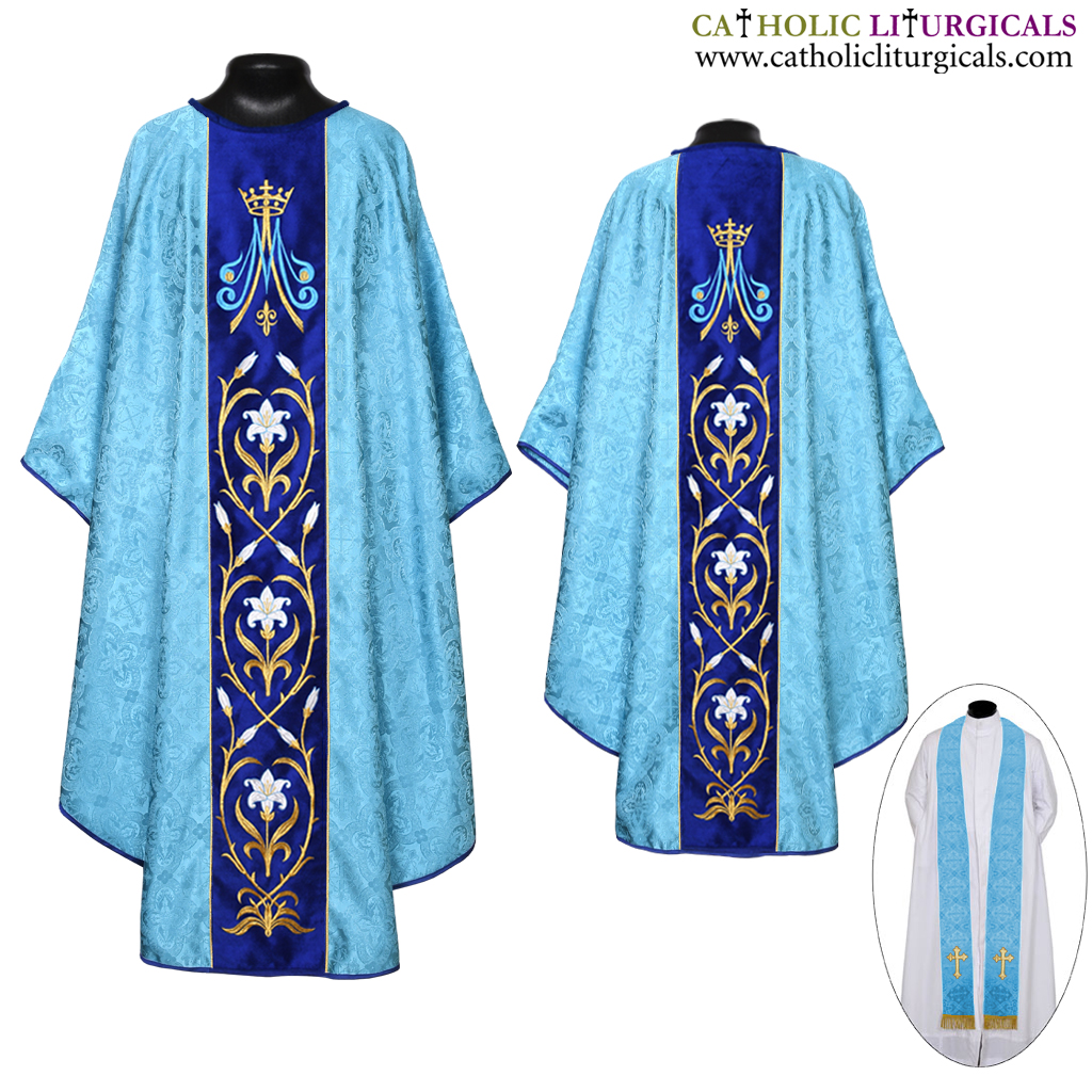 Marian Blue Gothic Vestment & Stole Set