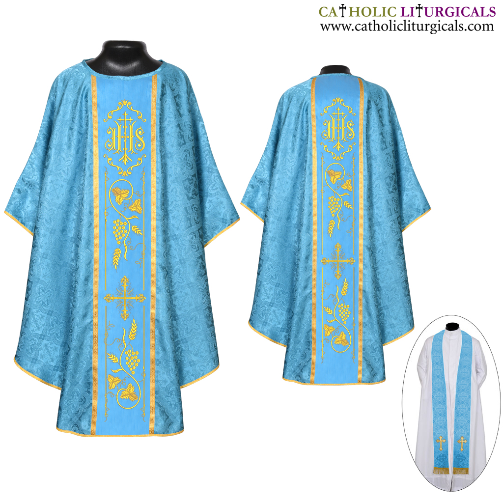 Marian Blue Gothic Vestment & Stole - IHS Embroidery