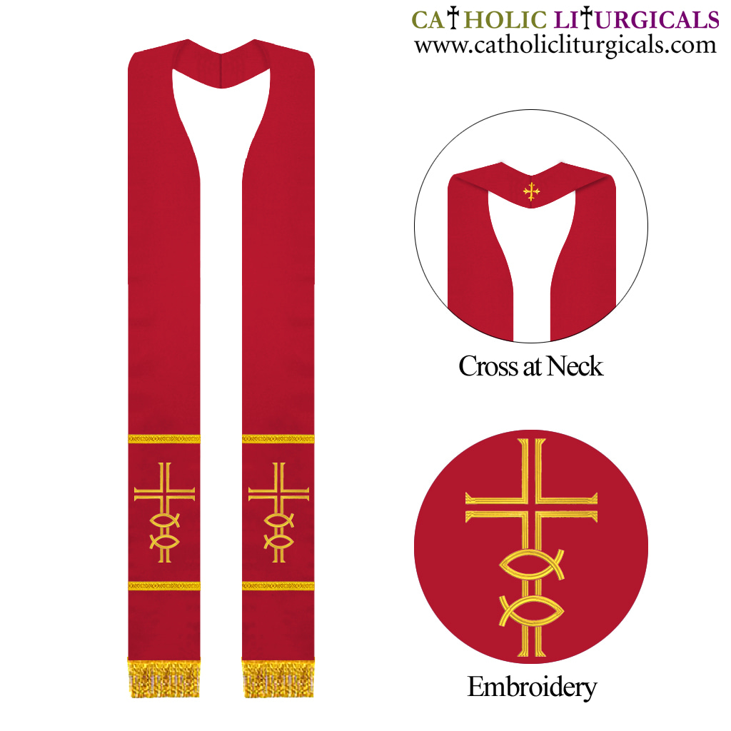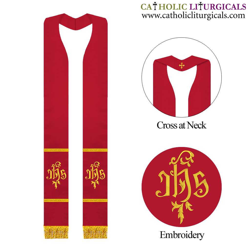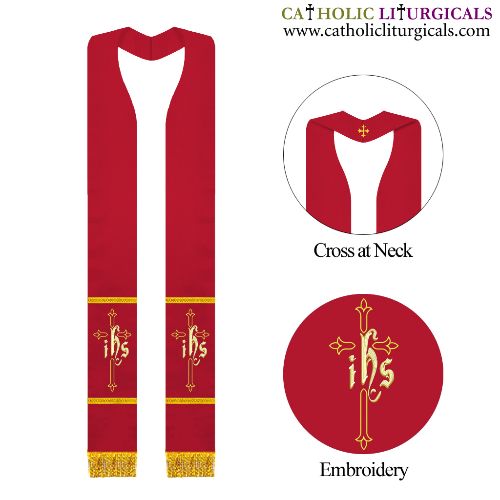 Red Priest Overlay Stole - IHS Embroidery