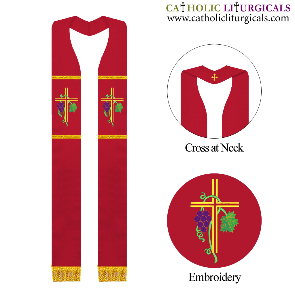 Red Priest Overlay Stole - Cross and Wheat Embroidery