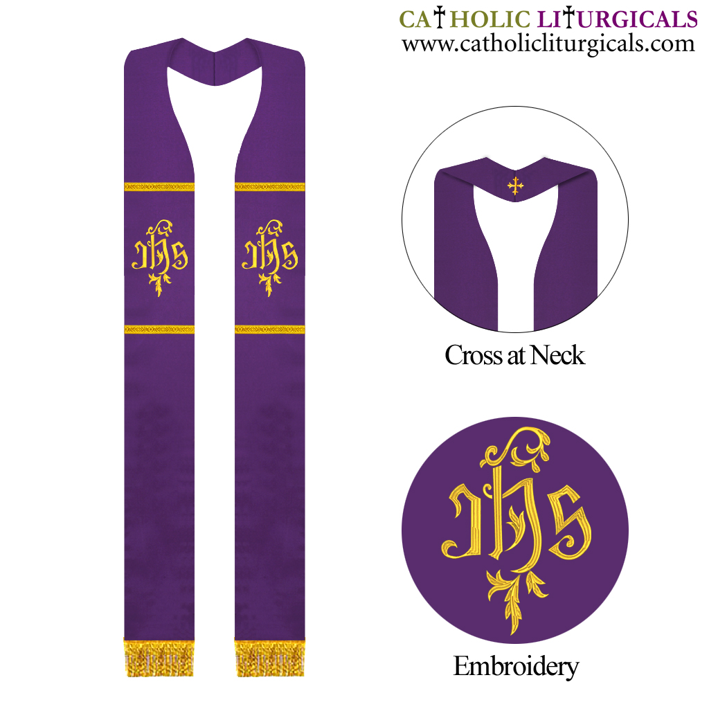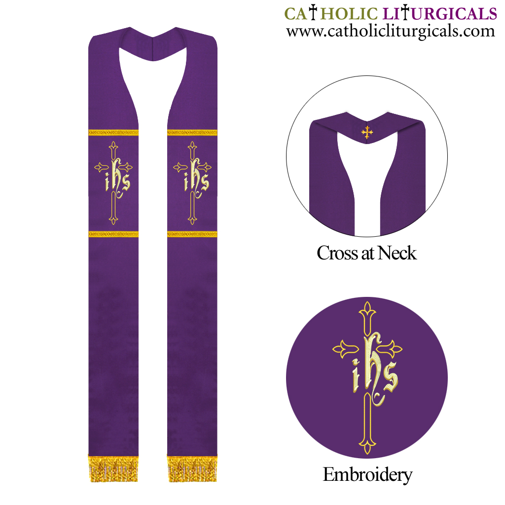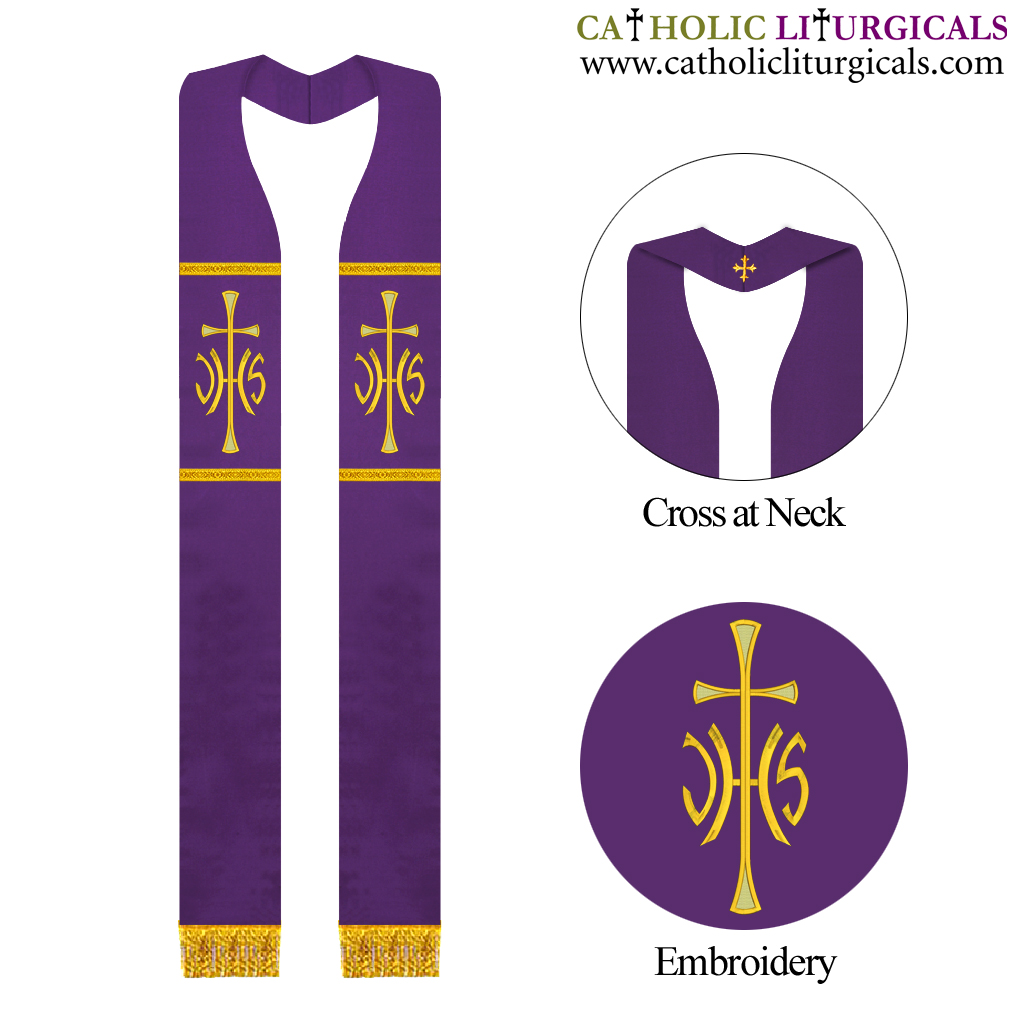 Purple Priest Overlay Stole - IHS Embroidery