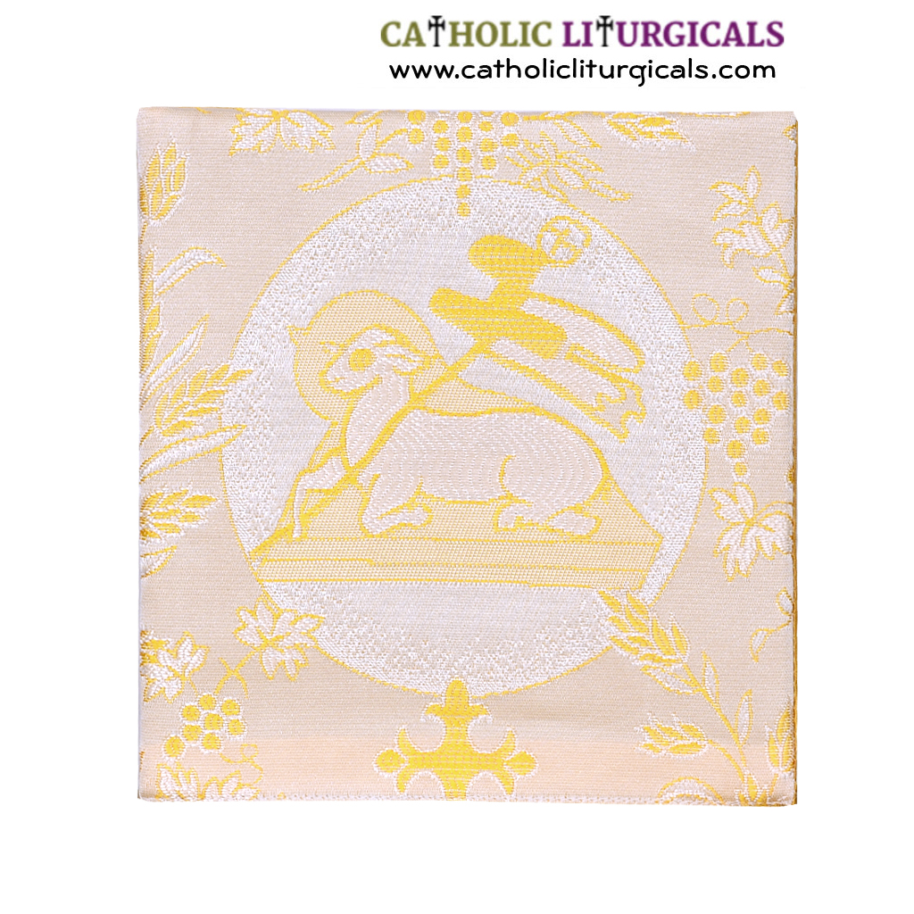 Ivory Chalice Pall with Wheat and Grapes and Agnus Dei Design.