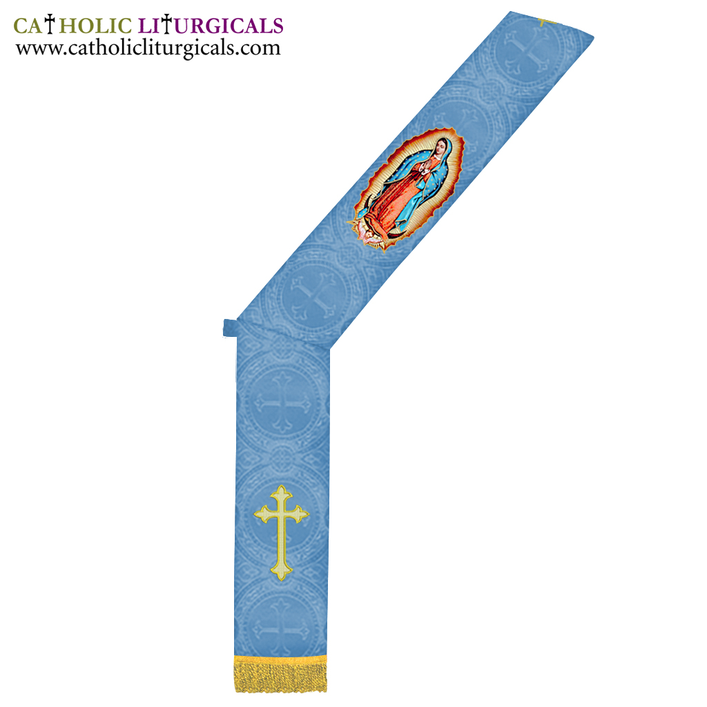 Marian Blue - Deacon Stole comes Cross with our lady of Guadalupe