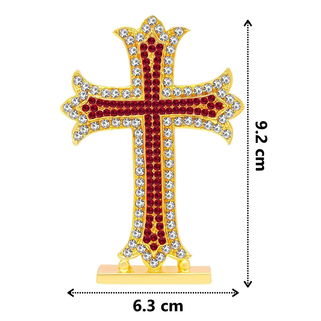 Gold Finish Standing Crucifix with White and Red Stones