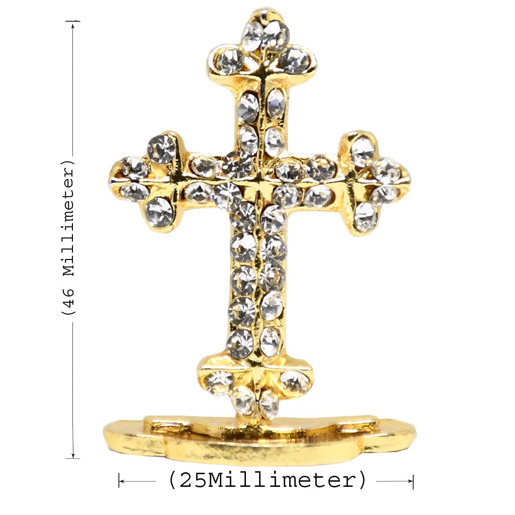 Gold Finish Standing Crucifix with White Stones