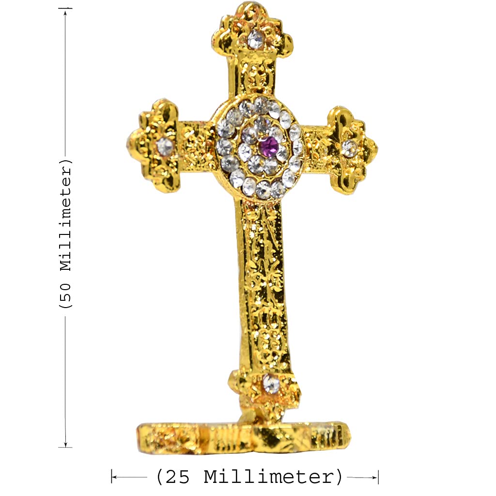 Gold Finish Standing Crucifix with White Stones