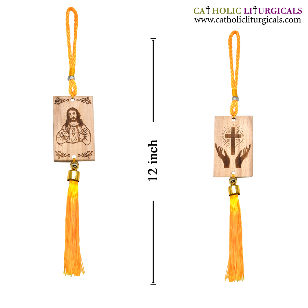 Yellow Wooden Jesus & Mary Car Hanging - Double Side