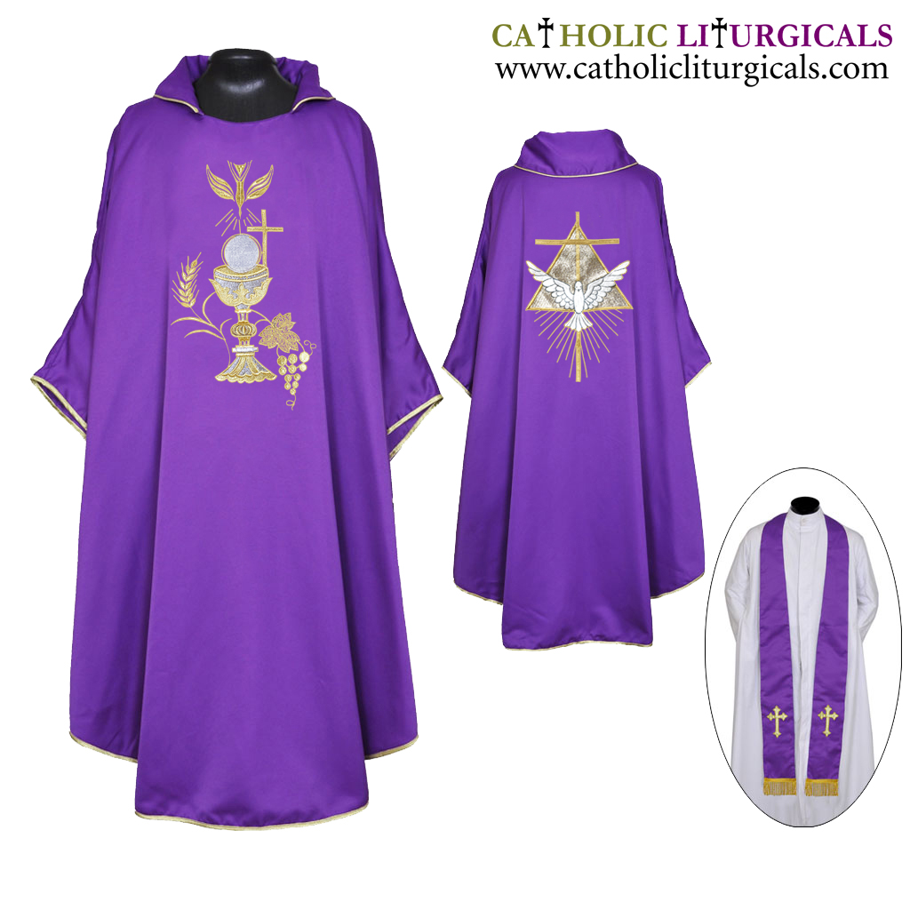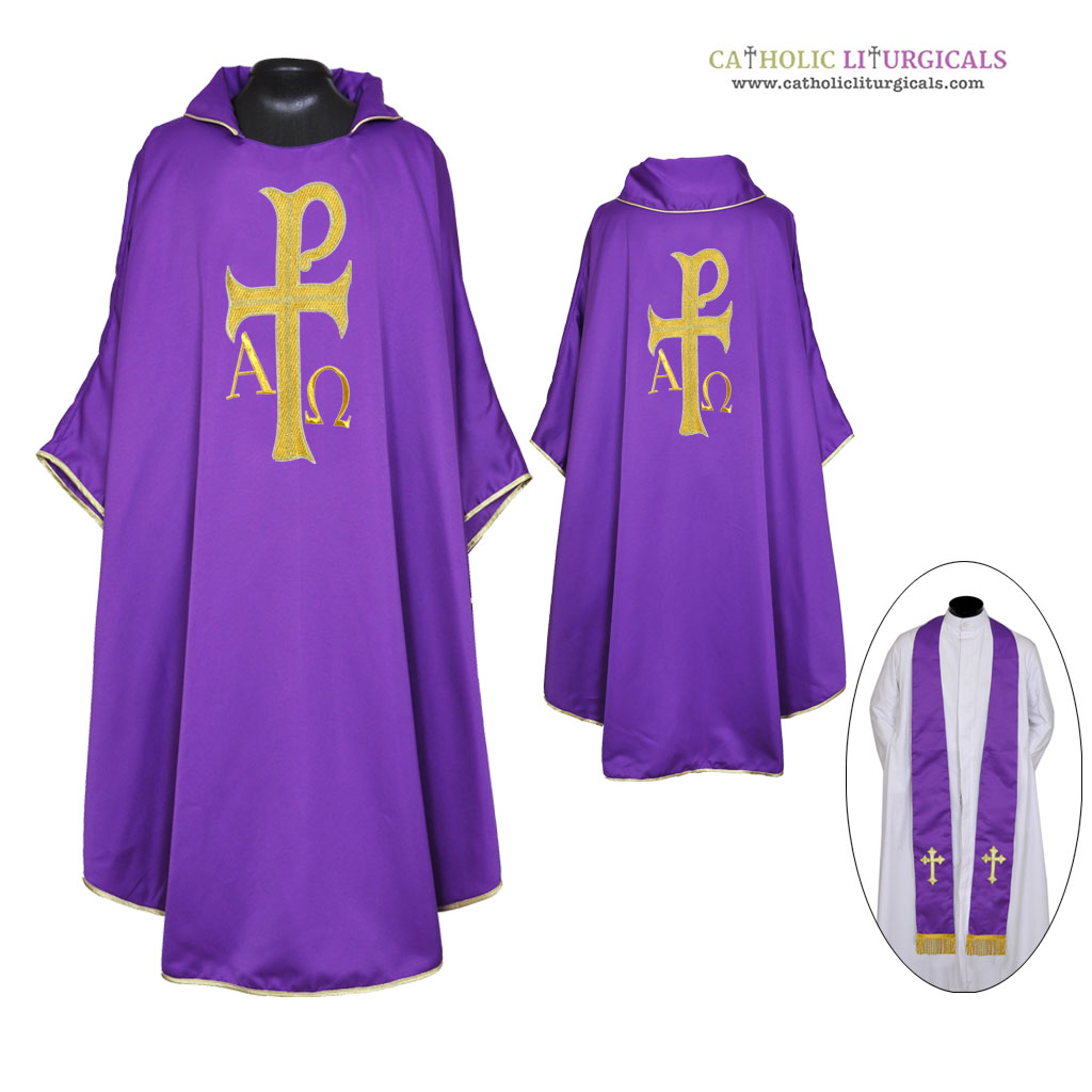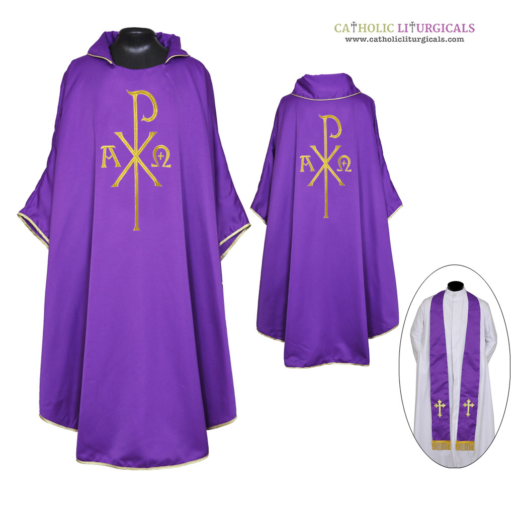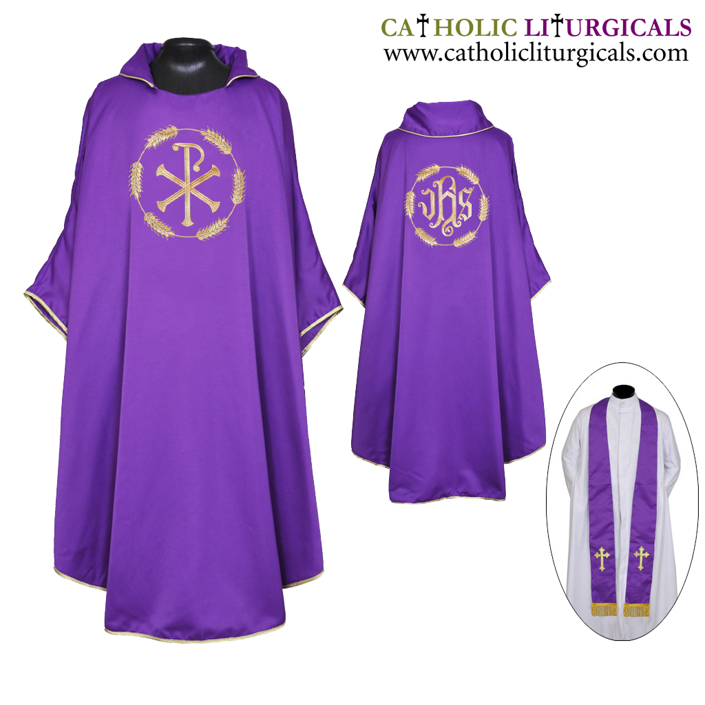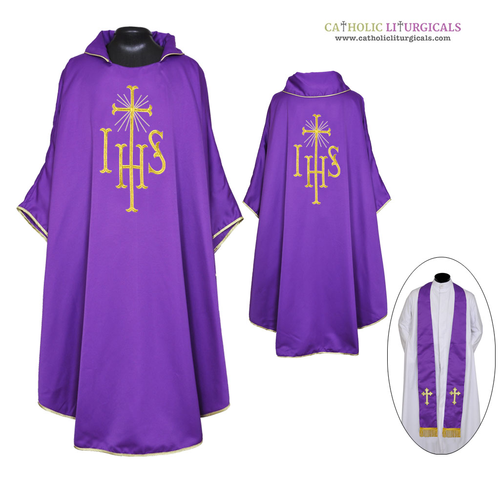 Purple : Gothic Chasuble & Stole Set - PAX and IHS Embroidey