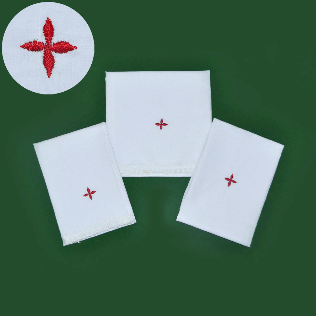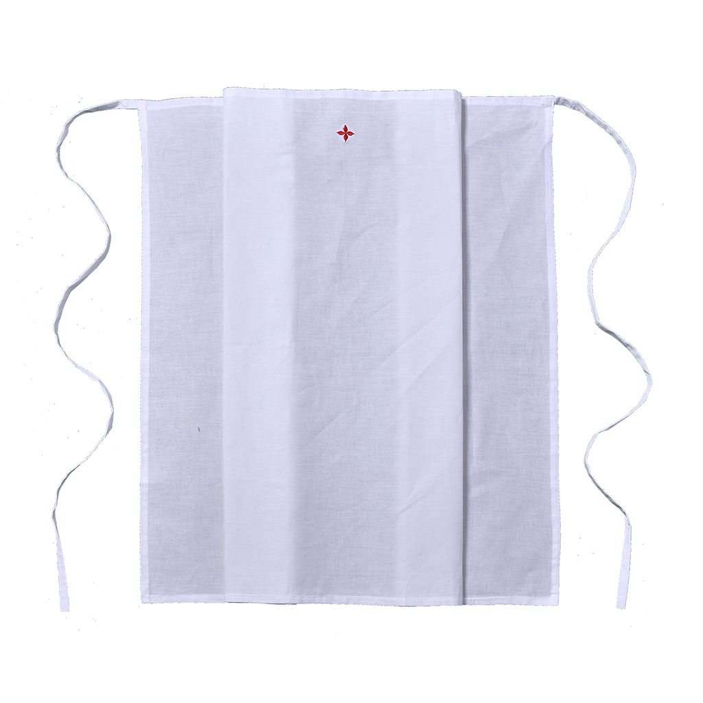 This Amice is made of Cotton fabric and come with a small red cross made of rayon yarn on the top-center. The strings are also made of the same cotton fabric and are 36 inches long. The amice can be made to custom size. To know more, please contact us.