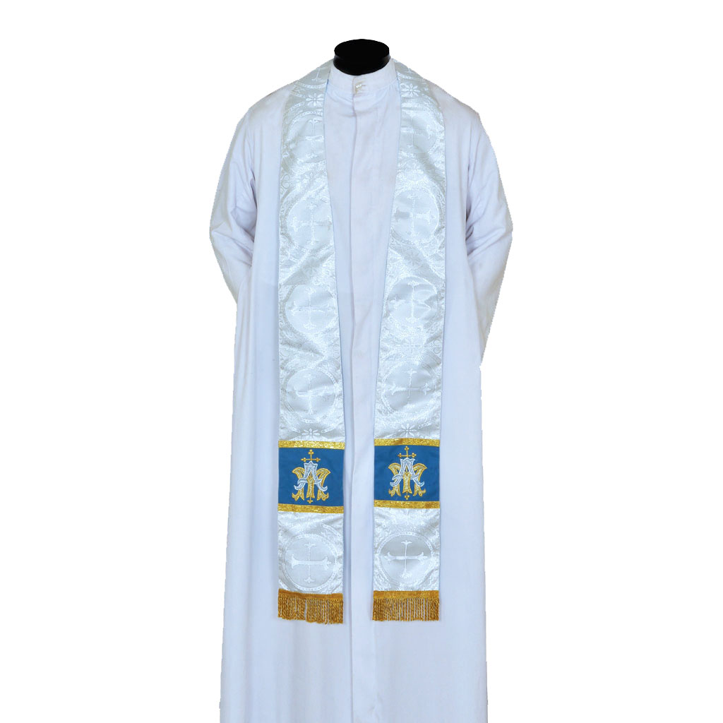 Cross Designed Church Brocade Fabric - White and Metallic Gold